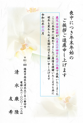 冒頭の挨拶文章が異なるデザインが選べます。下記印刷イメージの青枠内が対象です。